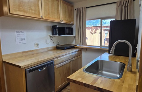 Kitchen includes 2 small Refrigerators, Microwave Oven, 2 Burner Induction Cooktop, K-cup Coffee Maker, Basic dishes and utensils, enough to be able to eat in your suite.