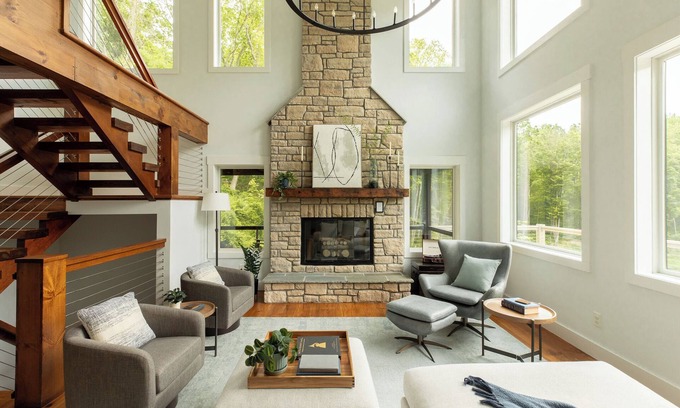 Escape to Mountain Rock—a light‑filled contemporary farmhouse tucked amid five private acres of pines along a rock ledge. Vaulted ceilings, window‑wrapped walls set the stage for an airy 4 bed / 4 bath retreat where sleek design meets Catskills warmth. Craft brunch in the chef’s kitchen, linger over long dinners at the live‑edge table, then stargaze on the deck or toast s’mores by the fire pit. Thoughtfully curated furnishings and hotel‑quality linens promise comfort; nature does the rest.