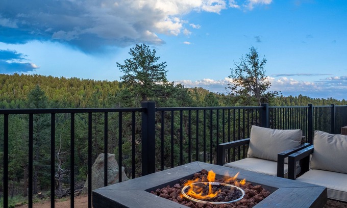 There are stunning Pikes Peak & rock formation views from the east facing windows & the Sangre DeCristo views from the south side! Enjoy the crisp mountain air on the deck watching the sun rise over America's Mountain, complete with lounging chairs and a propane firepit to roast marshmallows – also perfect for evening gatherings under the stars! Head into the converted two-car garage and challenge your friends or family to one of the many games we have to offer. From Ping Pong, to Shuffleboard, to Foosball or Shooting Hoops - there is something for everyone to enjoy!