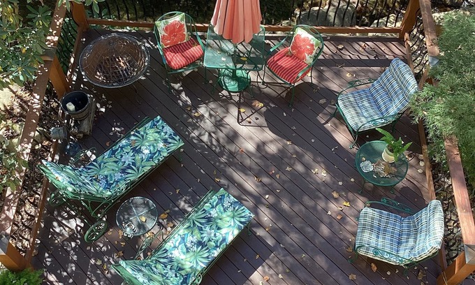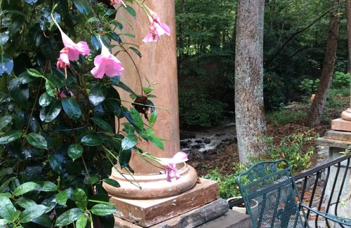 Located in the magical Tusquetti Valley sits on the fast rushing rock filled Compass Creek. The 1125 sq. ft apartment offers a large living area with desk and WiFi available. The full kitchen, open to the living area, has all the basic appliances, dishes, pots, and utensils. Guest provide their own meals. Washer/ Dryer, iron and board, hairdryer are included; as are linens, pillows, and towels. The large bathroom has a tub/shower combination. The bedroom has one queen bed. A large patio deck over Compass Creek offers seating, fire pit, and propane gas grill for your enjoyment.