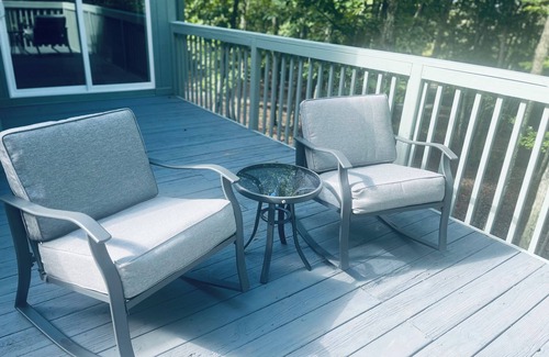 The back deck provides enough room for all to enjoy meals, play games, check out the views, or just relax with your preferred drink in hand.