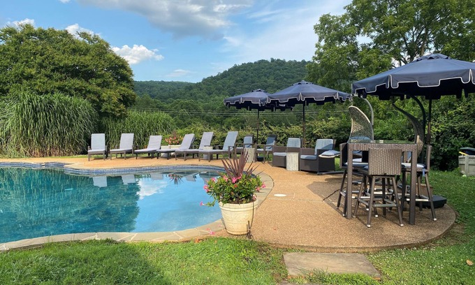 Or simply lie by the pool or on the spectacular screen porch in total privacy with views in every direction. . Enjoy shooting stars and an unbelievable night sky from the hot tub and sunsets over the blue ridge from the front porch.