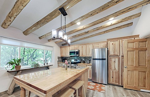 Mountain-View Adobe on Apple Orchard | Walk to Dining & Waterfall Trail is located in Arroyo Seco. Mountain-View Adobe on Apple Orchard | Walk to Dining & Waterfall Trail provides accommodation, featuring Laundry, TV, Bedding/Linens, among other amenities. This Cottage features Laundry, TV, Bedding/Linens, to make your stay a comfortable one.
