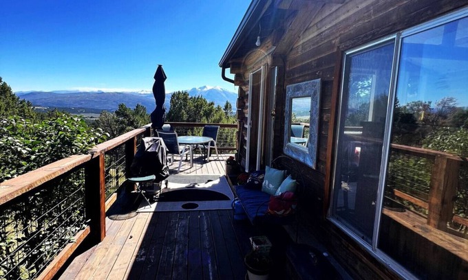 Surround yourself in the peace, romance and tranquility of this boutique cabin nestled in the pines. You will experience unobstructed views of the Roaring Fork Valley's prized Mt. Sopris, while enjoying the ammonites of a full kitchen, private hot tub, king sized bed, open floor plan, fireplace with the benefit of being close enough to town but out of the fray. This cabin was built by hand by the owner and her family. They harvested all of the logs in the woods are this area and worked tirelessly to create this quaint cabin. After raising three boys in this cabin they are now delighted to share this chunk of heaven with outstanding views to guests from all over. Please make your self at home and enjoy the peace and quite of the surrounding area.