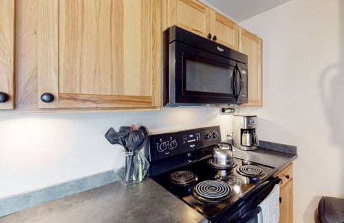 Inside, place any wet footwear in the boot dryer as you're welcomed by generous picture windows showcasing the lovely setting and ensuring you never lose sight of the beautiful view. After a day spent out on the slopes, curl up by the gas fireplace to watch movies, play board games at the dining room table, or get started on a hearty dinner in the well-equipped kitchen, which includes a Nitrobullet mixer, Nespresso, and Keurig machines for your convenience. Additional amenities include a private washer/dryer, high-speed WiFi, and full bathrooms to pair with both bedrooms.