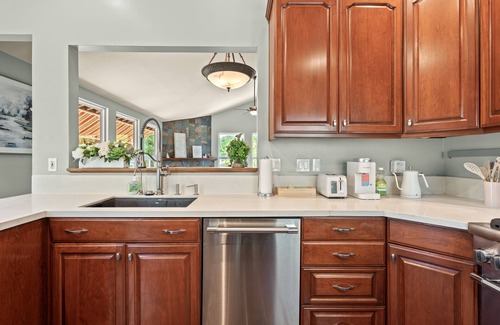 The property includes a garage for up to four cars, additional driveway parking, and street parking on a quiet residential street (please observe signage). This setup ensures easy access for families or groups traveling with multiple vehicles.