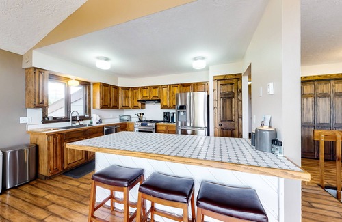 Ski bums are spoiled for choice at this comfortable, cozy house, located within 17 miles of five world-class ski areas. A morning at Breckenridge and an afternoon at Keystone? No problem – and you’ll even have time to make it to aprés ski at one of downtown Dillon’s pubs or breweries. But first: coffee on the deck, breathing in that mountain air and taking in the view. Inside, you’ll find an open floorpan with thoughtful, modern updates. The well-equipped kitchen has you covered for breakfast, with plenty of counter space and a full suite of stainless steel appliances, including a six-burner gas range. Head out with a full tummy – if you’re visiting in the warmer months, you’re surrounded by hiking and mountain biking, as well as water-based activities at Dillon Reservoir.