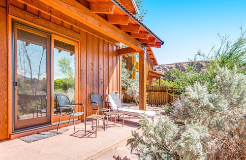 Begin each morning with a cup of coffee on the patio, where you can read a good book in a lounge chair, spread out the sports section at the table, and watch the sunrise illuminate the red cliffs. Use the provided WiFi to plan your daily adventures or embrace relaxation by taking a morning dip in the hot tub.