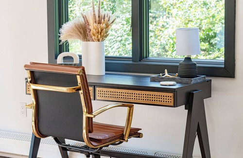 At the end of each day, retire to the spacious master bedroom, featuring an en-suite bath with a luxurious walk-in rainfall shower. French doors lead to the deck, where a cozy daybed offers a perfect space to unwind and reconnect with nature. Housekeeping services are available upon request during your stay if desired (additional fee).