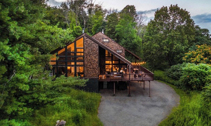 Thoughtfully designed, this secluded retreat is nestled on 12 acres of picturesque land in Warwick, NY. The exquisite home offers the perfect blend of luxury and tranquility, making it an ideal getaway for families and friends.