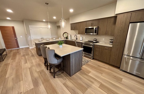 Our spacious condo offers rooftop access where you can enjoy breath-taking mountain views and cozy firepits. This building shares space with local favorites Back Porch Coffee Roasters, Bonta Gelato, and Sunriver Brewing (coming June 2025.) Everything you need right at your front door!