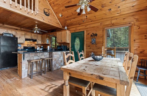 This luxury 3-bedroom home with 3 bathrooms and perfect for groups of up to 8, offers the perfect blend of modern comfort and rustic charm. Challenge the family to a billiards tournament, soak in the hot tub under a blanket of stars, and spend your days exploring nearby hiking trails and the stunning Lake Blue Ridge.