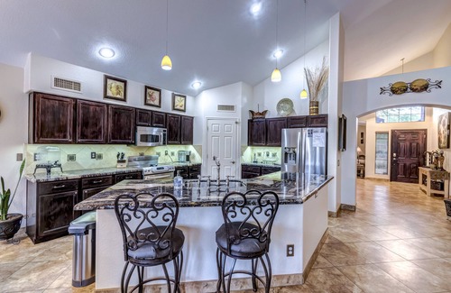 Best-rates for the Rancho Vistoso house starts from $416 per night with includes Private Pool, Balcony/Terrace, Accessibility, Sports/Activities, Bedding/Linens, Barbecue/Outdoor Cooking, Hot Tub, Air Conditioner, Parking, Pet Friendly, Pool, TV, Security/Safety, Wellness Facilities, Child Friendly, Guest Services, Kitchen, Laundry, Fireplace/Heating, Entertainment, Internet StayAndPlay offers fully equipped golf villas, golf hotels, golf resorts, luxury golf cabins, and exclusive golf retreats, making it easier than ever to find your perfect golf escape — ideal for families, peaceful getaways, or pet-friendly retreats with the whole crew.