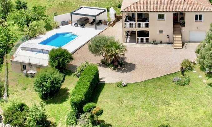 Located in Olargues, this fabulous apartment boasts 3 bedrooms - one with a king bed, one with a queen bed, and one with a twin bed and a child bed. With 2 bathrooms equipped with hair dryers and a bidet, guests will feel right at home. The large living room has a sofa bed for extra sleeping space. Heated swimming pool, Jacuzzi option with fantastic mountain views, Perfect base for day trips. 60 minutes from the Mediterranean beaches. Free parking. [Please note that seasonal pricing may apply. Please message us for a quote. These prices are average for mid season]