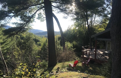 Simple, no frills, cozy, very private, long-time mountain home with timeless views from 1000' on a ridge into Mt. Washington Vally and the sound of rushing water below. Serenely peaceful. Minutes to North Conway, major area attractions, scenic spots, golf, hikes, and climbs. 15 minutes to Cranmore, just over 20 to Attitash and Black, 35 to Wildcat. The smell of the forest, sounds of wind and water are rejuvinating in any season. A view so expansive you can watch the weather change.
