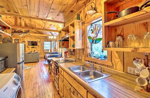 Designed for couples to relax and unplug, this studio cabin boasts the utmost privacy and serenity on your Mountain View getaway. Once you're settled at this vacation rental, choose to hike, fish, or float along the South Sylamore Creek or White River, then cozy up by the fire inside or out. You won’t have to worry about amenities with a bathroom, well-equipped kitchen, and flat-screen TV at your disposal. You can also head out and visit the city of Mountain View for a taste of civilization.