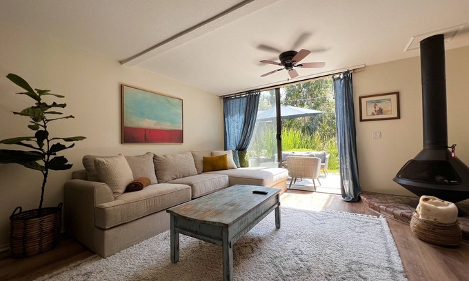 Get ready to melt into this tranquil space and pamper yourselves! Discover this hidden gem 20 minutes to the beaches and super close to Whole Foods and some world class restaurants. I custom remodeled and designed this 2 story condo to be the ultimate oasis for peace, renewal, nourishment and relaxation and I know you will thank me for it! You are sure to love the sunny patio by the creek, pool, jacuzzi, tub, cozy fireplace and dream-like bed. It is truly a stay fit for kings and queens.