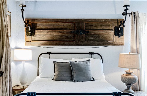 This home sleeps 10 guests between 5 private bedrooms. Each bedroom features luxury furnishings with a rustic Austin touch including queen size beds, unique artwork, and soft linens for sound nights of sleep.