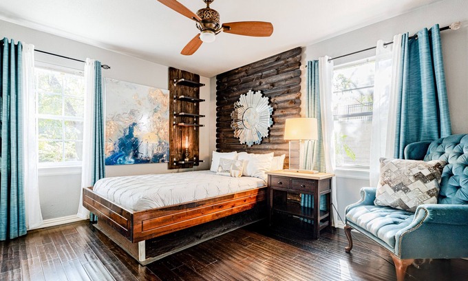 Mr. Wilson is located just South of Downtown Austin in the Dawson neighborhood. The home’s central location puts you within easy reach of Austin’s popular attractions like the Texas State Capitol, Congress Bridge Bats, and the Greetings From Austin Mural. On the nearby food scene, there is Bouldin Creek Cafe for vegetarians, Matt’s Famous El Rancho for classic Tex-Mex, Loro (created by the famous founders of Uchi and Franklin’s BBQ) for fusion cuisine, and the South Austin Food Truck Park with its variety of cuisines. Zilker Park, which houses the famous Barton Springs Pool, offers access to paddle board and kayak rentals, and central Lady Bird Lake and nature trails boast a two-mile loop perfect for exercise or a relaxing stroll. Be sure to visit the live music bars and clubs on 6th street, a part of Downtown Austin that earned the city the nickname of “Live Music Capital of the World.”