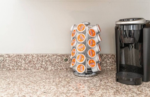 Kitchen is fitted with everything you will need, including free coffee with the Keurig. Pots, pans, and cooking utensils included for your home cooked meals.