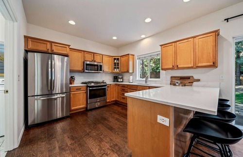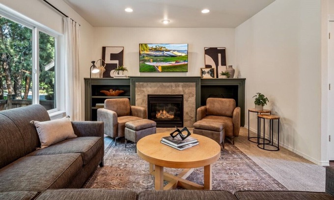 Welcome to Mt. Bachelor Retreat, a newly renovated vacation home that sleeps up to 10 guests in the heart of a family-friendly neighborhood. No detail has been overlooked in this home! Enjoy the salt water hot tub, game room, family suite with attached playful camp-themed bunk room, free 1G internet and parking, and fresh modern furnishings. Located on the road to Mt. Bachelor and all the beautiful lakes and hiking spots along the Cascade Lakes Highway, this home is also a short jaunt to the best spots in Bend – picturesque downtown parks along the river, popular breweries and festivals, and the Hayden Homes Amphitheater.