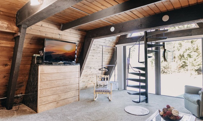 Welcome to Funky Town! This cute loft bedroom A-frame apartment in Maple Falls is conveniently located to in-town amenities and offered at a BUDGET price! The main floor features a full kitchen and a full-sized refrigerator / freezer, an apartment sized range / oven, a dishwasher, a coffee maker and toaster, plus a dining area, one full bath, and a generous sized living room area with a large flat screen monitor plus a DVD player and a laundry cubby with a full-sized washer / dryer. Ascending the spiral staircase leads to the loft area with one queen sized bed. Don't forget Fido. This pet-friendly vacation property will comfortably sleep up to 2-persons (ENFORCED Maximum Occupancy!).