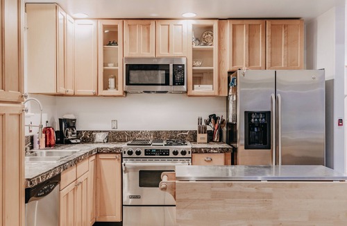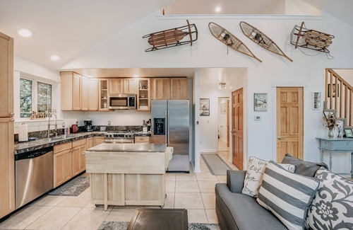 This contemporary 2-story, 2+ bedroom, 1 3/4-bath home is the perfect retreat for your family vacation! The first floor features an open floor plan with vaulted ceilings, a spacious living area with a gas fireplace and a hide-a-bed, a generous dining area, and a gourmet kitchen with upscale appliances and granite countertops. There are two bedrooms (one of which includes a laundry cubby with a stack washer/dryer). Each bedroom features 1-queen size bed, as well as monitors with wireless for streaming Netflix (*on your account). Separate doors allow access to the adjoining rear deck. Sandwiched between the two lower bedrooms is 1-full bath. The second floor features an open loft sleeping area with 1-queen size bed and an adjoining 3/4-bath. An expansive window area combined with a Westerly exposure lets lots of sunlight into this bright and cheery home. Just outside the rear deck is a gas grill and your own private hot tub, newly installed! Now with an EV Charger for Level 2 charging with Guests providing their own Nema 14-50 plug! This pet-friendly (2-Pets Max, No Exceptions) and monitored family vacation property will sleep 6 to 8-persons (Enforced Maximum Occupancy).