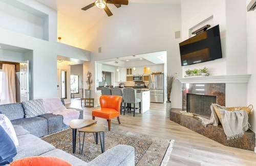 Plan your next Arizona adventure to this picturesque oasis in Phoenix! Nestled just outside North Mountain Park, this 3-bedroom, 2-bath vacation rental villa boasts a central location and on-site hiking trail access. When you're not exploring the surrounding landscape, you can get competitive with a game of tennis, unwind with a movie on the Smart TV, or soak up the scenic cityscape from the furnished patio.