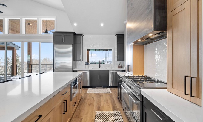 If you're looking for a home away from home that offers relaxation, luxury, and tranquility, look no further than Mtn. Shadow Lodges offered by Bear Lake Luxury Rentals. Our homes are the perfect retreat for anyone looking to escape the hustle and bustle of everyday life and enjoy a peaceful and inspiring environment. Imagined and brought to life by JackieCulleyDesign you will feel and sense luxury from the moment you step inside, you'll be greeted by plush furnishings, modern amenities, and a serene atmosphere. These are a combination of 2 listings called Mtn. Shadow Lodge South and Mtn. Shadow Lodge North. Check them out and have twice the fun and relaxation with indoor pool and sports court with climbing wall.