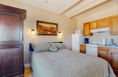 This historic home away from home has been remodeled to provide you with a fantastic spot to call home. Enjoy impressive views of the dramatic desert landscape. As you enter your air-conditioned abode, you will discover a well-appointed kitchen with all the essentials to prepare exquisite homemade meals, a smart TV, a convenient dining table for two, free WiFi, and an en suite bathroom. You will have access to a shared gas grill along with a wooded patio.