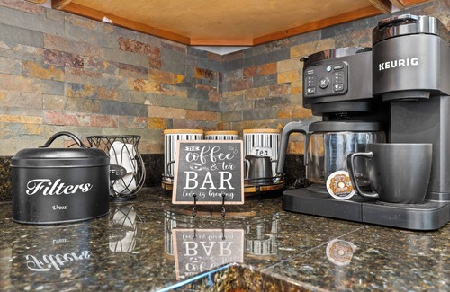 - Keurig/drip coffee maker (starter coffee provided), kettle