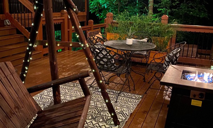 ☀️ Mtn view, Hot Tub, Fire Pit, Patio Swing, Giant Jenga,12 mi from Blue Ridge ⛰ | Cabin in Mineral Bluff