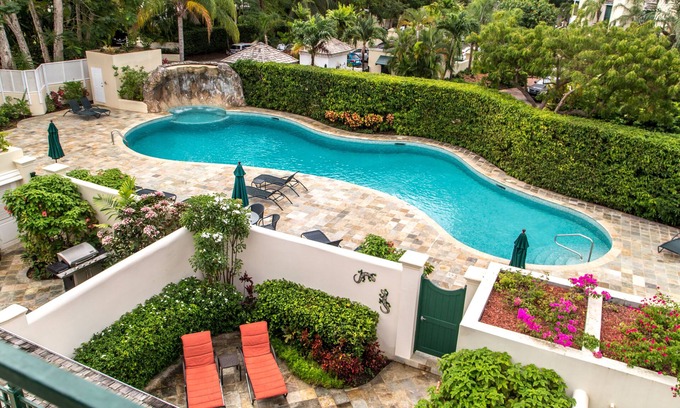 'Jus Chillin' is perfectly named for a truly relaxing, luxury Caribbean holiday. You'll enjoy beautifully furnished spacious rooms with exceptionally comfortable huge beds, luxurious white cotton linen and soft towels and marble bathrooms. The master bedroom suite enjoys a sea view from the balcony, has double vanity bowls and a dressing area plus a separate bath and shower. Three of the bedrooms have rocking chairs on lovely balconies. Every effort has been made to make your stay enjoyable from pure comfort of furnishings through to the technology of WiFi, iPod docking station, TV and DVD player. Our housekeeper regularly changes linen and keeps the high standard of cleanliness in the property. A cook can be arranged via our house manager who is also on hand to help you with any questions you may have during your stay. 'Jus Chillin' has a large free form pool with waterfall directly outside the back door of the property with plenty of sun loungers, parasols, chairs and tables. The property is on a small gated, beautifully landscaped development with 24 hr security with two more pools and is just a 1 minute walk to Mullins Beach. Once on the beach you will enjoy the exclusive Royal Westmoreland private beach membership which includes towels, sunbeds and parasols, waiter service for drinks and food and access to the members decking area with washroom facilities. Various watersports are available on the beach including jet skiing, sailing, speed boat trips, turtle trips, banana boat and rings as well as scuba diving, snorkeling and surfing.