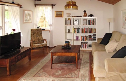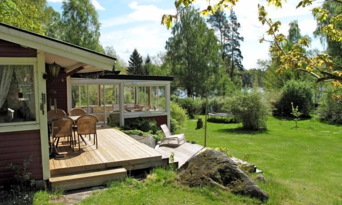 "Munkhalla Morgonsolen", 5-room house 80 m2. Rustic and cosy furnishings: living room with winter garden with dining table, TV, CD-player and DVD. Exit to the terrace. 1 room with 1 double bed. 1 room with 2 beds. 1 room with 2 beds. Exit to the veranda. Studio with 1 double bed. Exit to the veranda. Open kitchen (4 hot plates, oven, toaster, kettle, microwave, freezer, electric coffee machine). 2 showers, simple dry toilet. Electric heating. Wooden floors. 3 balconies, terrace. Terrace furniture, balcony furniture, barbecue (portable), conservatory. Facilities: children's high chair, baby cot. Please note: one double bedroom is outside the apartment. Non-smoking house. Maximum 2 pets/ dogs allowed. Smoke alarm, fire extinguisher. No internal connecting door between the separated properties. Freezer approx. 60 l. Please note: there is a bathroom with shower and composting toilet in the main building. In addition, there is a sanitary cottage with shower and separate composting toilet.