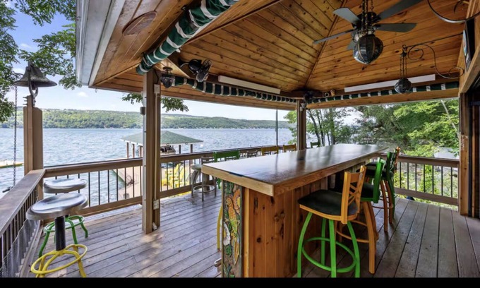 With enough space to sleep up to 8 guests, this spacious rental features a large great room, three en suite bathrooms, and an oversized deck. Step outside and you'll find yourself right on the shores of Keuka Lake, where you can take advantage of our kayaks, docks, and firepit. Top floor is for when rental season is closed and owners come back to live there