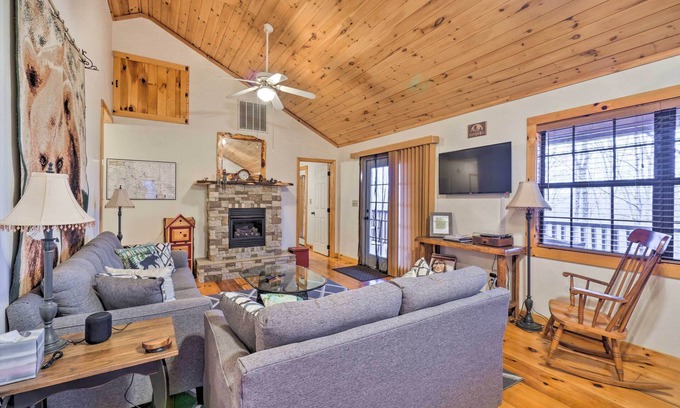Reconnect with loved ones at this secluded 2-bedroom, 2-bath cabin in the Smoky Mountains. In addition to the ideal proximity to outdoor adventures like hiking, rafting, and ziplining, you'll love spending time on the furnished deck or by the fire pit. The charming Murphy vacation rental also features a cozy fireplace and serene forest views, perfect for unwinding and unplugging from the outside world.
