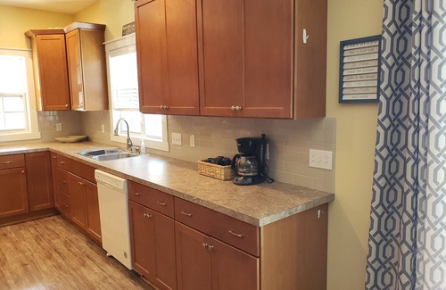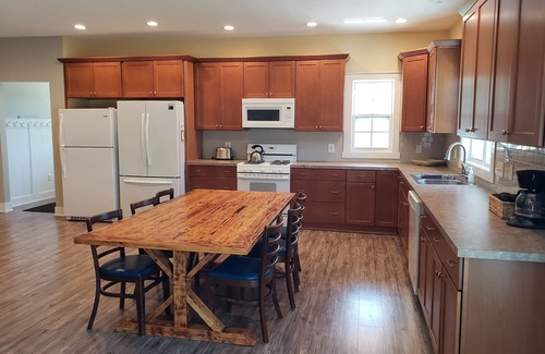 Fully stocked kitchen with with two refrigerators, stove, microwave, coffee maker, cookware and dishes to accommodate 18 guests. Outdoor grill, picnic table, patio set and firepit.