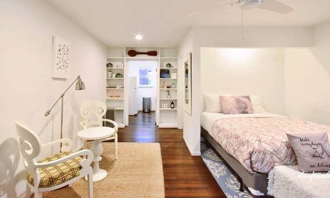 Features 400 sq ft studio apartment that accommodates up to 2 guests:
