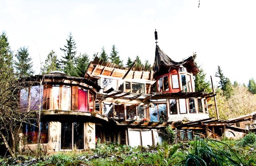 This rugged 9 acre property has walking trails, mountain views, gardens, apple orchard and many examples of handcrafted, sculptural homes and structures.