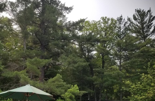 Charming cabin nestled into the pin forest on granite rock with private waterfront, screened gazebo in a secluded bay with a large dock where you can experience serenity while enjoying the lake with all that nature has to offer.