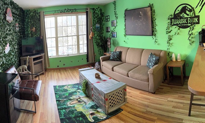 Welcome to the Jurassic Era! This is the most epic suite in all of the Berkshires! Brand new, you will love all the intricate details. From the Dinosaur Containment Chamber to fossils, to of course Giant Dinosaurs, no details are left out. It is our pleasure to bring the magic of dinosaurs to your all year retreat! Note: The room is Brand New, and will be the most epic immersive Suite in the Berkshires