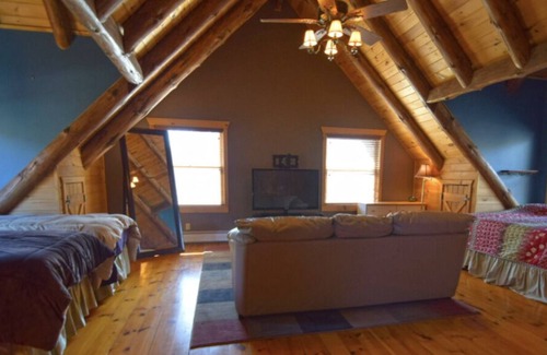 Stunning custom built lodge in beautiful country setting. Three level rustic log home with all modern amenities including satellite tv and wireless internet.