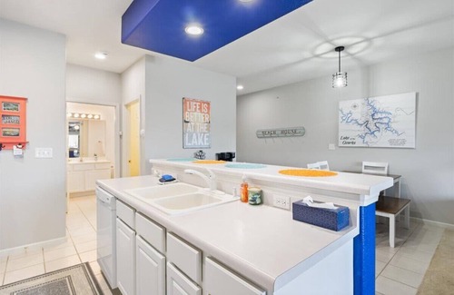 This unit has 2 bedrooms. Lakeside master suite with a private bath and jetted tub. The second bedroom has two single beds. Tv's provided in both rooms & the living room. This complex is perfect for a getaway with 3 pools, 2 hot tubs and a lakeside boardwalk promenade that covers the entire cove. Located at the 2MM close to lakeside restaurants and entertainment. Provided with your stay is a 12x32 slip and a PWC slip located on the same dock with great cove protection giving easy docking. The kitchen is fully stocked & you have a stocked coffee bar as well.
