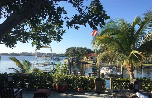 • Beautifully landscaped waterfront house with open water view, private dock, water-view sunroom. Access to open water, Kayaking, fishing, dolphin watching, paddle boarding in the backyard anytime!