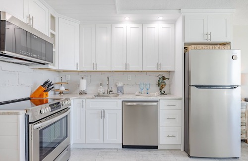 107 is on the ground level with a view of the ocean and the pool. What we enjoy the most about 107 is you can sit out on the patio and enjoy the view of the pool or ocean. It has two queen beds, sofa and newly remodeled kitchen with granite counter tops and stainless appliances. 107 sleeps up to 4 guests. Sorry over 4 guests will not be allowed to check in.