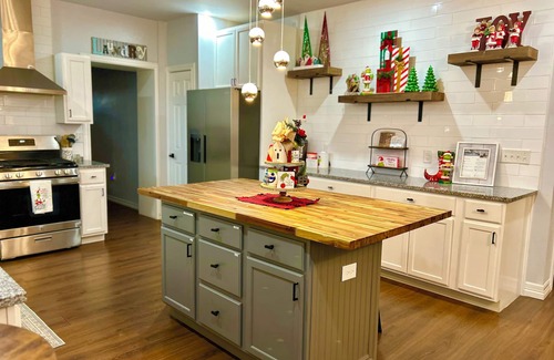 Christmas is almost here!!! And the house is ready for this season, We have added a little bit of Christmas all throughout the house to make it more comfortable for you and your group, weather is for a night or longer stay we want you to feel right at home & forger your worries in this spacious and serene fully renovated home, close to downtown & Baptist Hospital but away from all the noise, enjoy the open space, big rooms, fully equipped kitchen, laundry, WiFi, big back yard with a launch area and fire pit ready to enjoy!