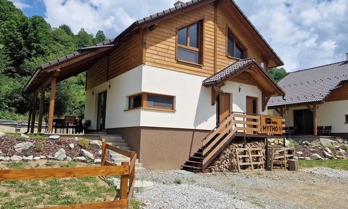 Mytho chalets are two newly built (2022) family cottages, furnished in symbiosis with the environment. Natural materials, a view of the surrounding hills and a fireplace complete the mountain atmosphere, and with 3 bedrooms, 2 bathrooms, a fully equipped kitchen, or a separate ski room, you won't have to limit yourself. The cottages are located in a quiet environment in the middle of the hills above the village of Mýto pod Ďumbierom. In the immediate vicinity, you will find a variety of activities, 3 ski resorts, a large number of hiking trails and cycle routes, from simple family trips to challenging all-day trips.