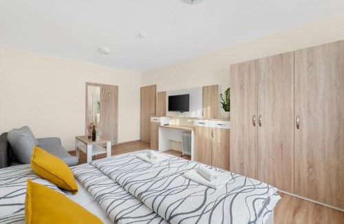 Nad Šťastným sklepem offers accommodations in Valtice, 5.3 miles from Lednice Chateau and a 15-minute walk from Colonnade na Reistně. The property is around 6.6 miles from Minaret, 8.2 miles from Chateau Jan, and 17 miles from Wilfersdorf Palace. Free Wifi is available throughout the property and Chateau Valtice is a 10-minute walk away. The spacious apartment includes 2 bedrooms, a fully equipped kitchen with a dishwasher and an oven, as well as a kettle. Towels and bed linen are available in the apartment. The accommodation is non-smoking. Guests at the apartment will be able to enjoy activities in and around Valtice, like cycling. MAMUZ Schloss Asparn is 27 miles from Nad Šťastným sklepem, while Train Station Valtice is 1.4 miles from the property. Brno-Turany Airport is 39 miles away.