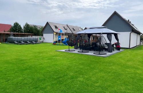 NADMORSKI RESORT in Niechorze provides accommodations with a seasonal outdoor swimming pool, free bikes, and barbecue facilities. This property offers access to a balcony, free private parking, and free Wifi. The vacation home offers an outdoor fireplace and a 24-hour front desk. The vacation home provides guests with a terrace, garden views, a seating area, satellite flat-screen TV, a fully equipped kitchen with a dishwasher and an oven, and a private bathroom with shower and a hair dryer. A toaster, a fridge, and stovetop are also offered, as well as a kettle. At the vacation home, all units are allergy-free and soundproof. For guests with children, NADMORSKI RESORT provides outdoor play equipment and a baby safety gate. A water park and kids pool are available at the accommodation, while guests can also relax in the garden. Rewal Beach is a 16-minute walk from NADMORSKI RESORT, while Kołobrzeg Railway Station is 30 miles from the property.