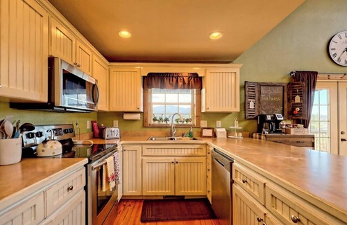 Plenty of room for 10 people. The kitchen is well appointed with everything you might need for preparing meals.